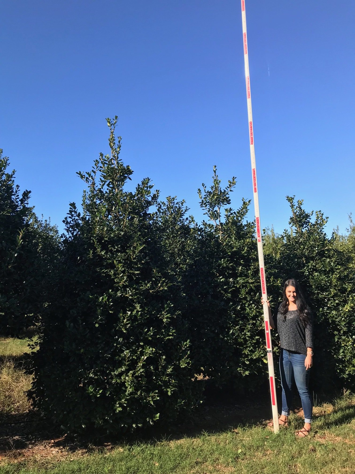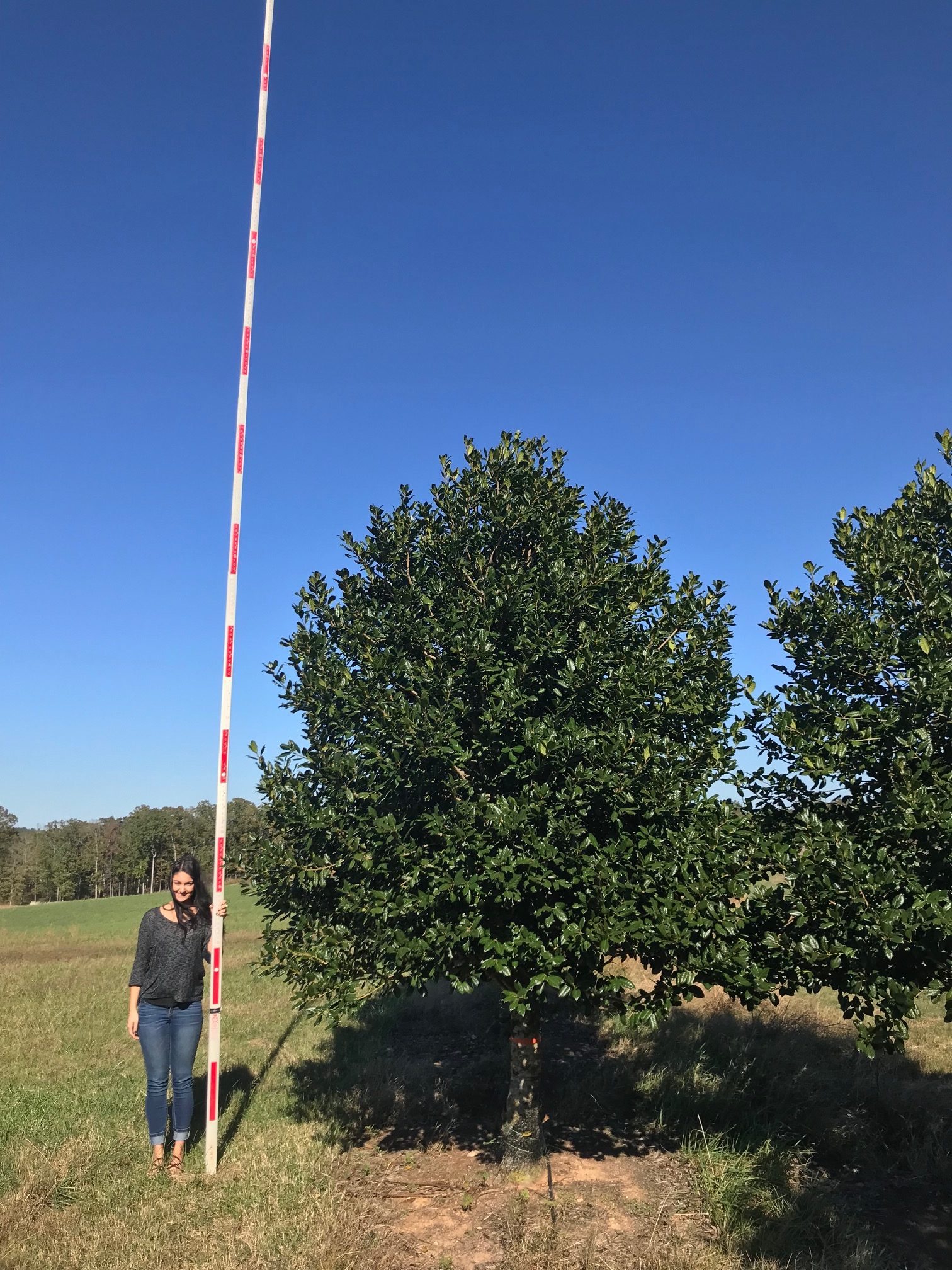 Evergreen tree - own root. Perhaps the most successful and reliable large holly in the Southeast, ‘Nellie R. Stevens’ makes an excellent screening or accent plant. Beautiful broad pyramidal evergreen tree to 25 feet. Leaves are a lustrous dark green. Available full-to-ground or with a trained single trunk.