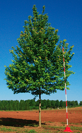 Native shade tree - own root. Very popular red maple cultivar with excellent oval-round head. Brilliant orange to red fall color, later than most other red maple selections. More heat tolerance than most other red maple selections, making it the best selection to date in southern climates.